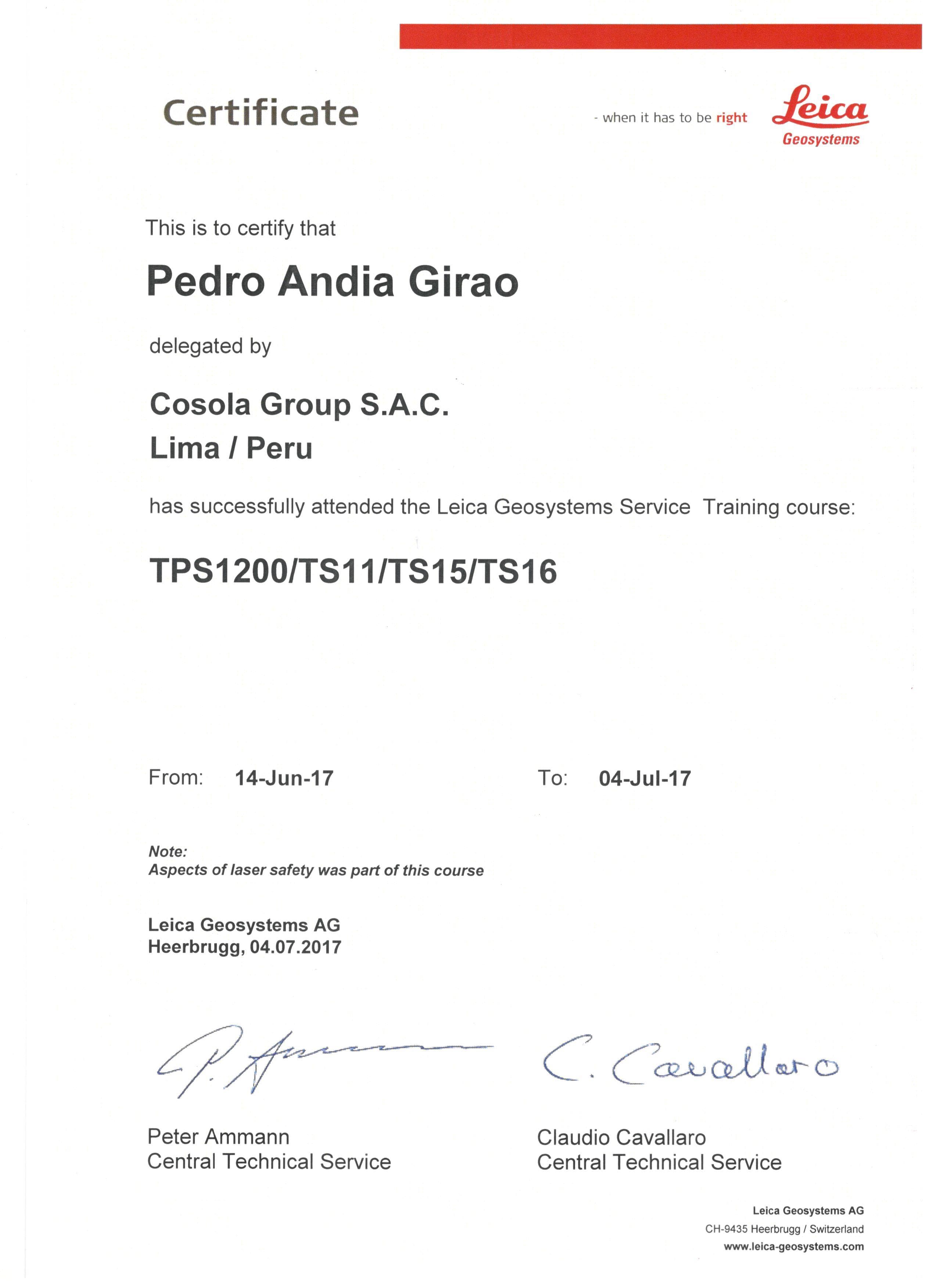 Como distribuidores oficiales de la firma Leica Geosystems.Ofrecemos un servicio completo de calibración y reparación en instrumentos de topografía y GPS. Puede visualizar y/o descargar el certificado del curso de capacitacion,